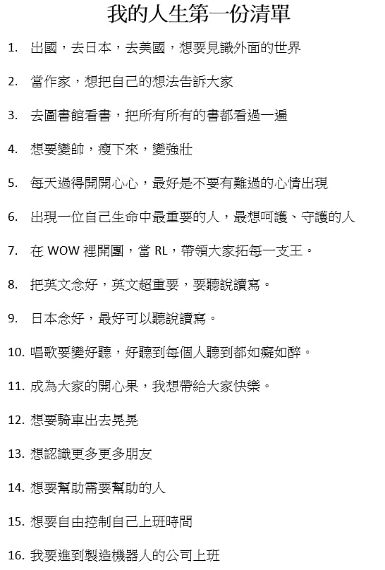 下圖是我當時寫下的人生清單: