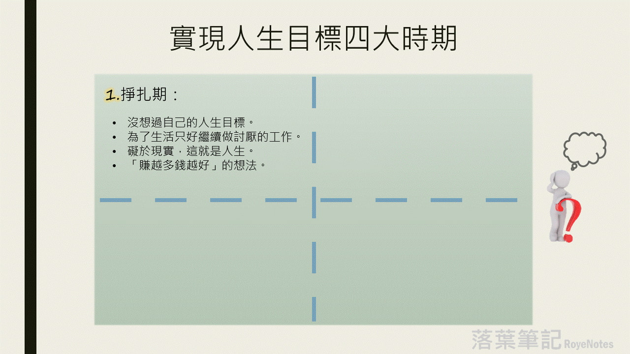 在說說這方法之前,我先介紹一下什麼是人生目標的四大時期。
