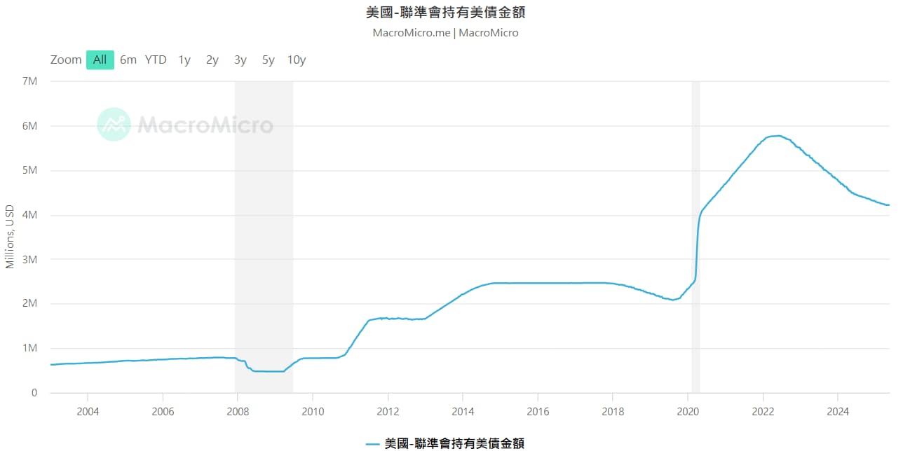 現在美債會下跌明顯是消化2020~2022年美聯儲瘋狂購買推升的價格。
