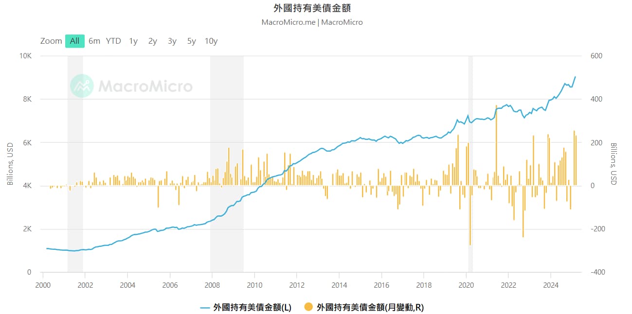 會買美債的人,除了美聯儲自己還有外國人吧!