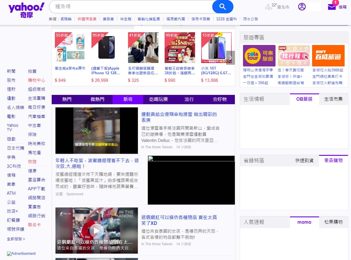 再下下張圖則是使用Chrome瀏覽YAHOO首頁