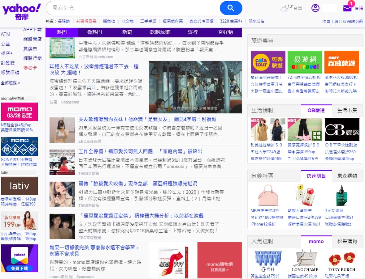 下圖是使用Brave瀏覽器來瀏覽YAHOO首頁。