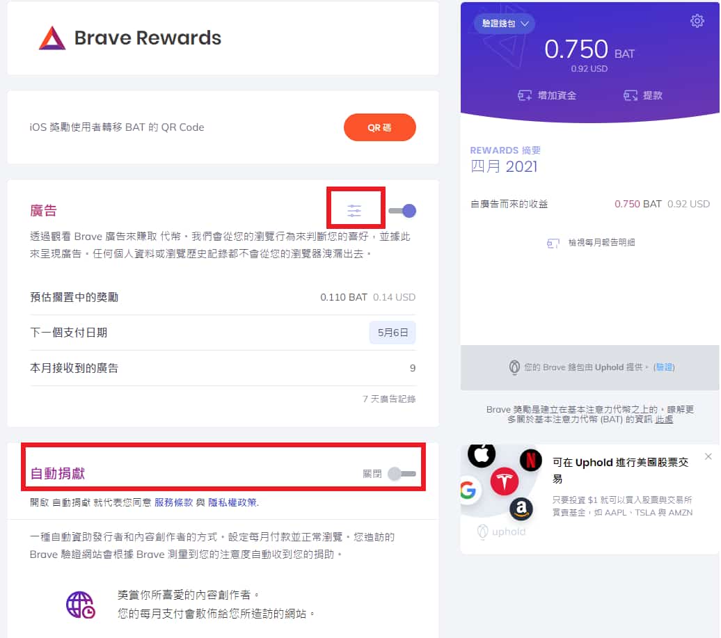 Brave雖然幫大家過濾掉了廣告,不過也可以透過設定來選擇是否要看廣告。