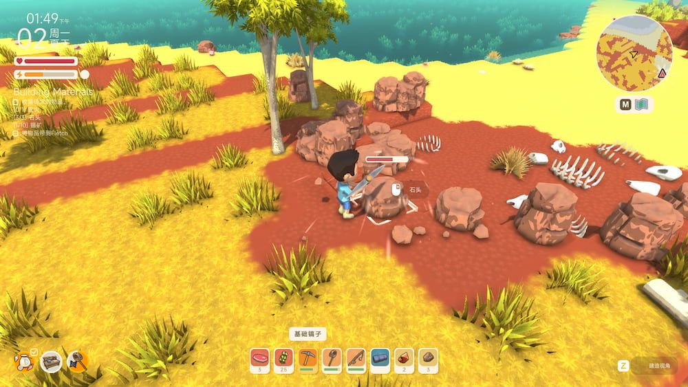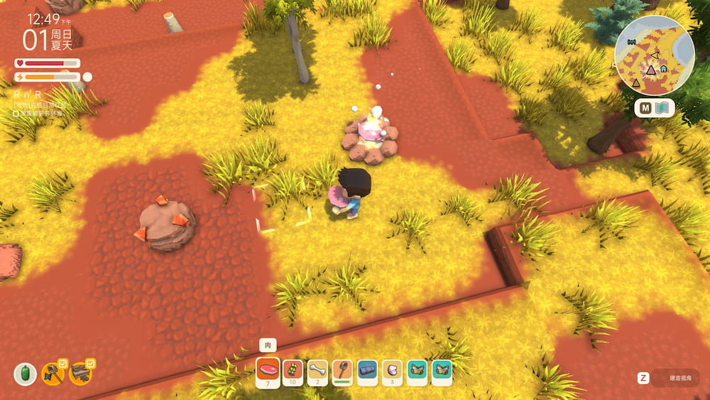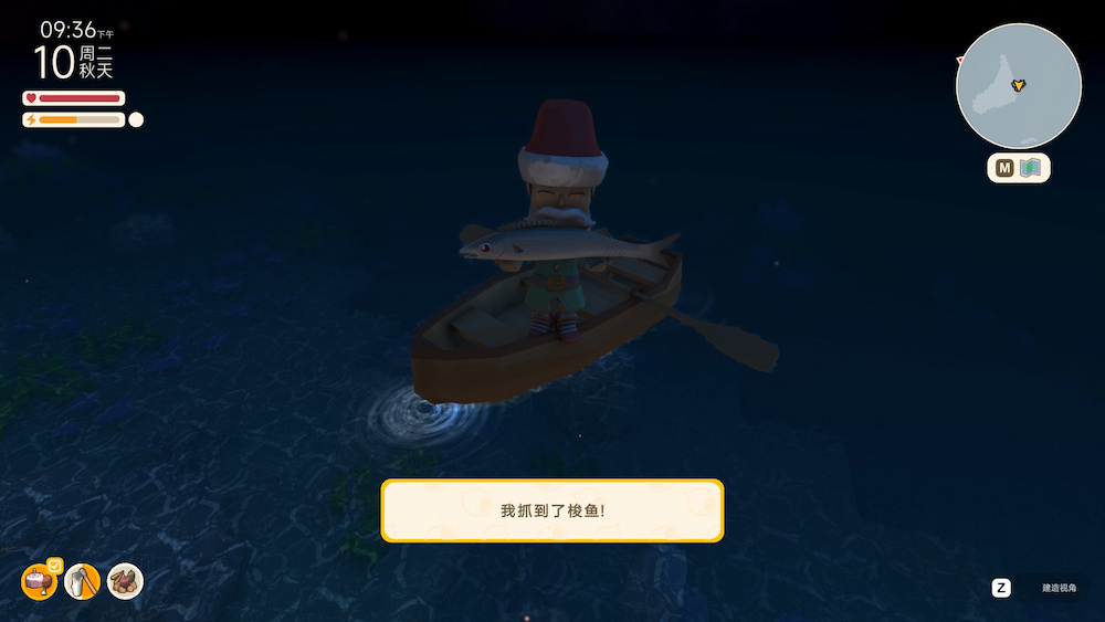 這遊戲跟星露谷一樣沒有所謂的飢餓,但是有體力值,每砍一下樹、採一次礦、拋一次竿等做動作都會號體力。