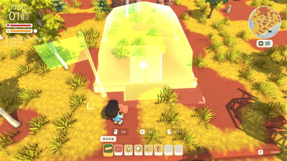 找個風和日麗的地方建造帳蓬就完工囉,有網友推薦可以先大概繞一下整座島嶼哪個地方物資豐富,因為這時候時間是凍結的。