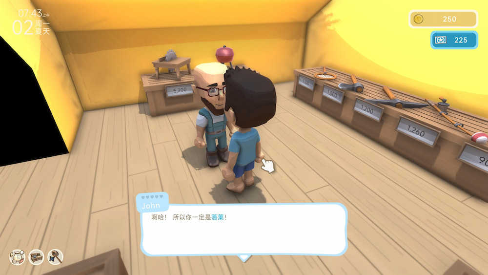 第一位一定是雜貨店老闆John,這個雜貨店是唯一讓你可以賣東西的地方,而且也可以買採集用的工具,例如斧頭、礦鎬、釣竿等。