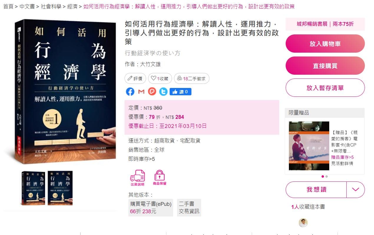 2.額外優惠:買兩本書享95折(網頁上顯示的價格已經79折,兩本書75折是指原價的75折)