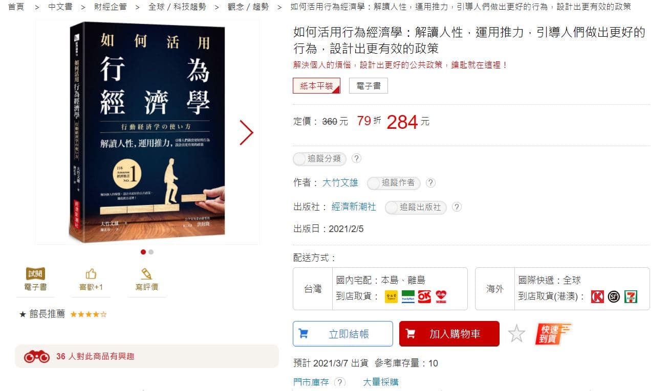 今天觀察對象的書本是「如何活用行為經濟學:解讀人性,運用推力,引導人們做出更好的行為,設計出更有效的政策」,這本書是2021年2月5日出版的,是個離寫這篇文章時剛好一個月的書。