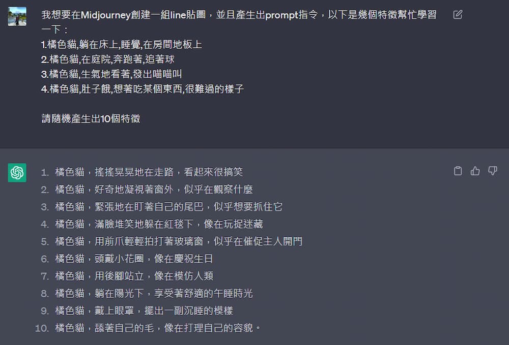 主要是之前我製作LINE貼圖時,要請GPT幫我想其他範例用的。(可看這篇文章)