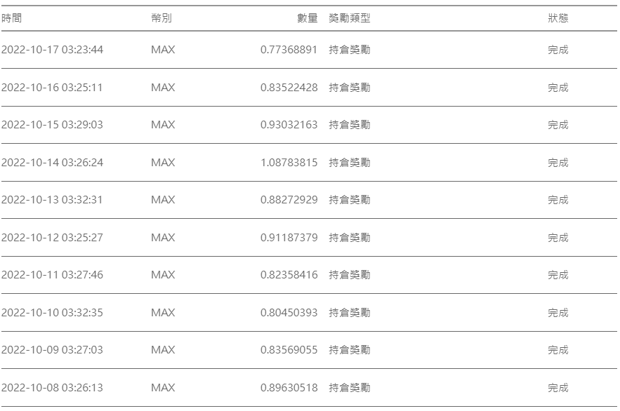 接下來是重點,我每日獲得MAX幣的歷史紀錄。