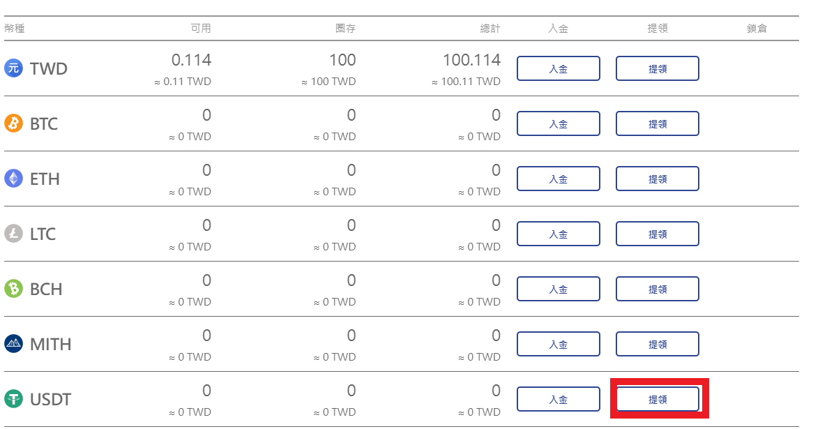 在MAX的錢包,找到USDT幣,按下提領。