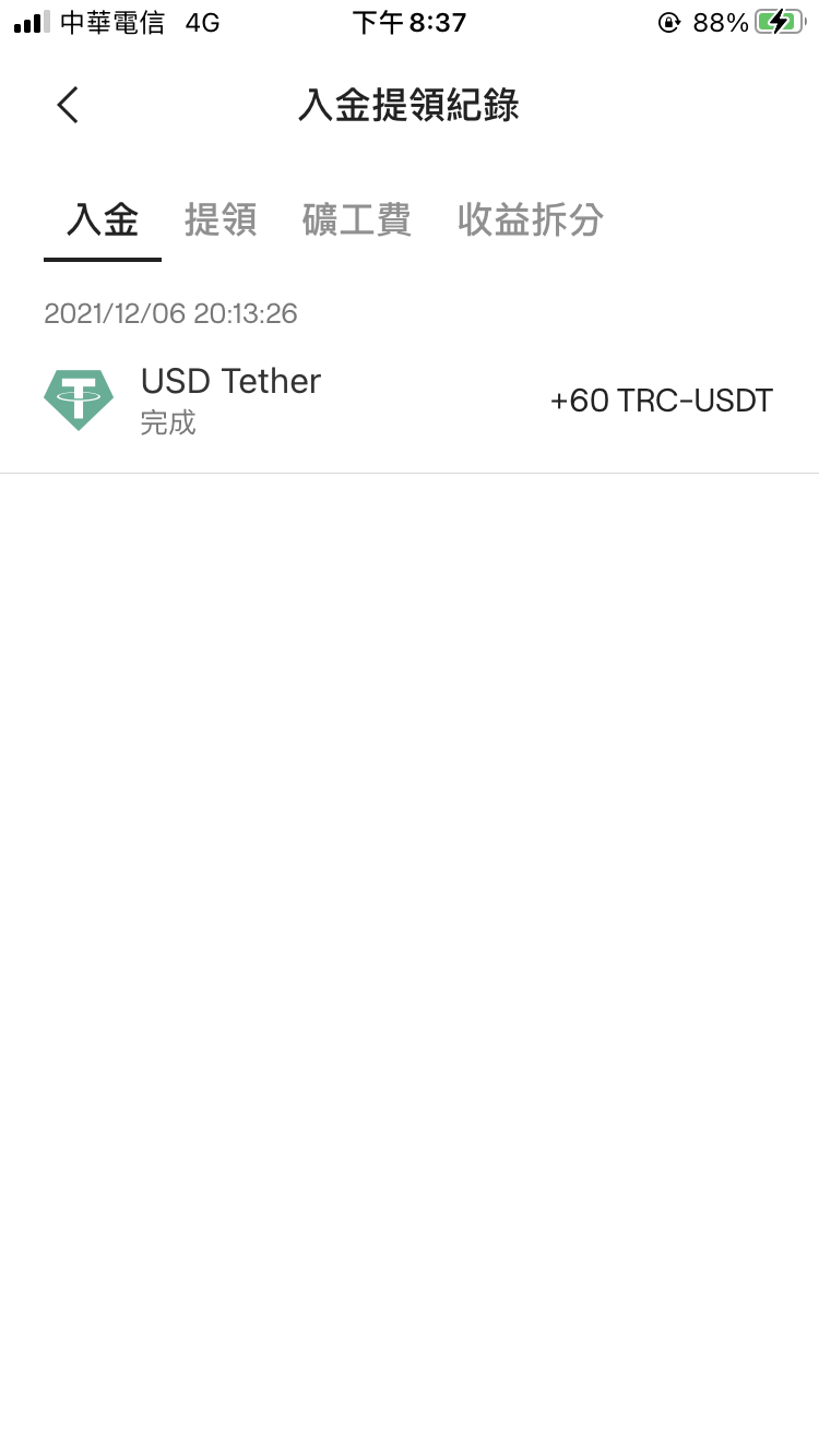 接著在差不多一小時後,晚上8:13分我的Oursong收到USDT了。