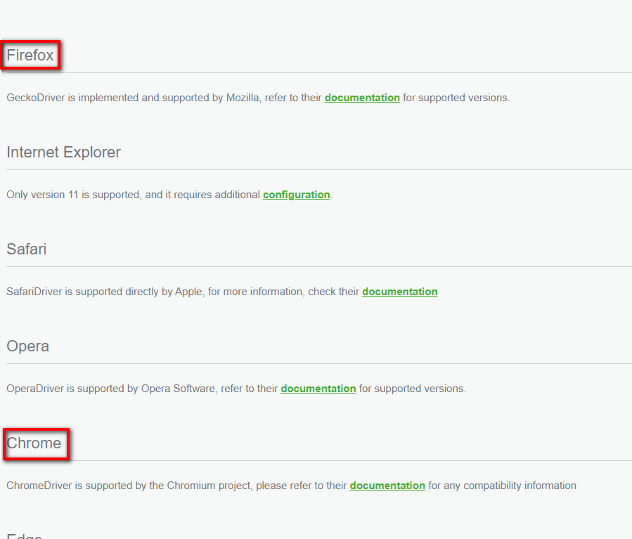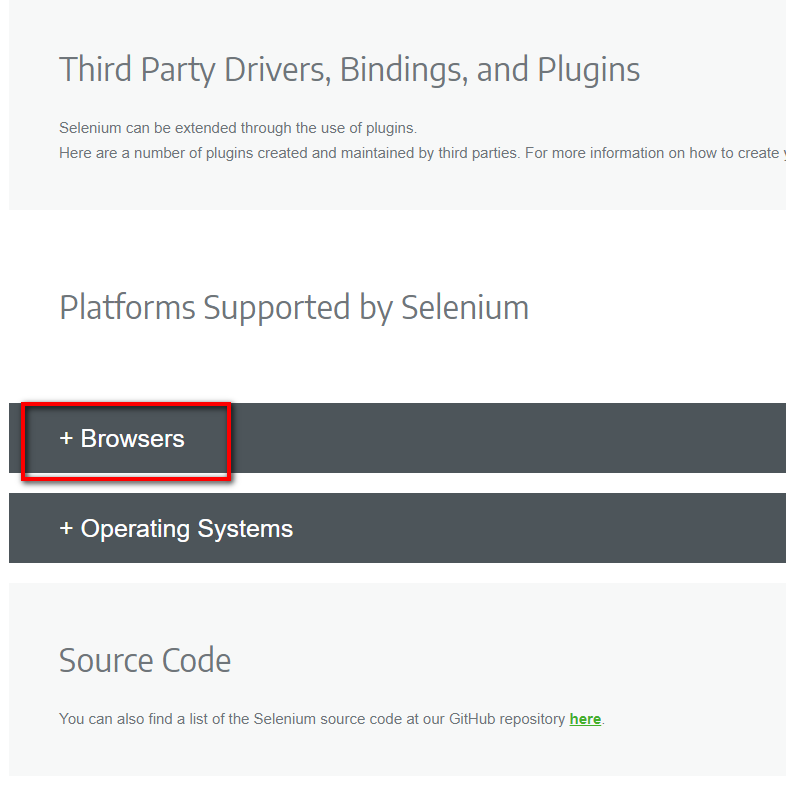 第二步是到 selenium官網,畫面往下移到約莫中間的地方,有個Browsers。
