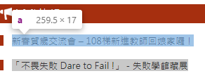 [新春賀歲交流會 – 108梯新進教師回娘家囉!,「不畏失敗 Dare to Fail !」-失敗學館藏展]partial_link_text :找出內容有text的<a>元素