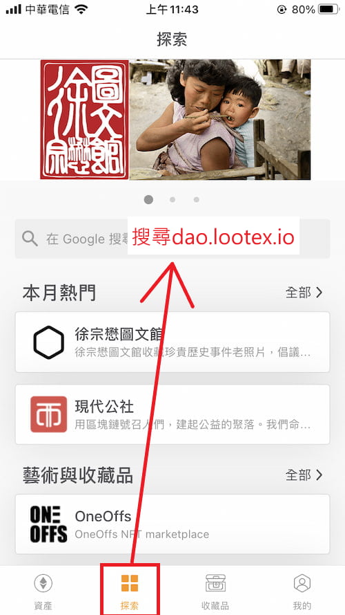 在Qubic首頁下面探索分頁→google搜尋「dao.lootex.io」,才能進到LOOT質押網頁。