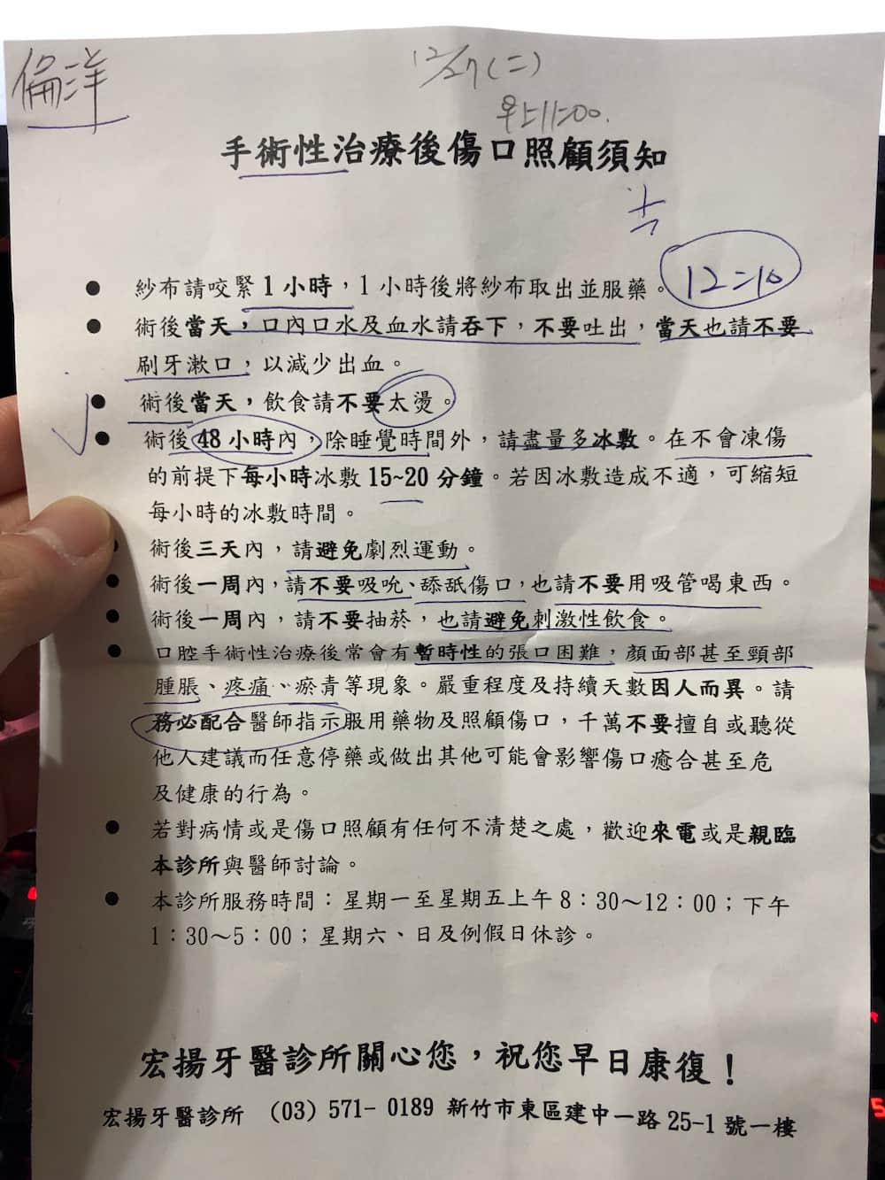 12月20日今天早上去了一下公司,10點半跟公司請假便來到了弘揚牙醫,11點前到了診所。