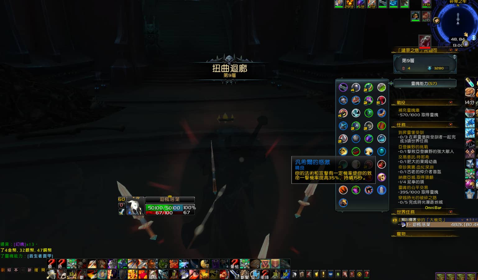 到了第七層開始血量建議撐到7萬以上,全程開劍下亡魂還是有可能會見底,每次開怪都先貪慾命令農一下