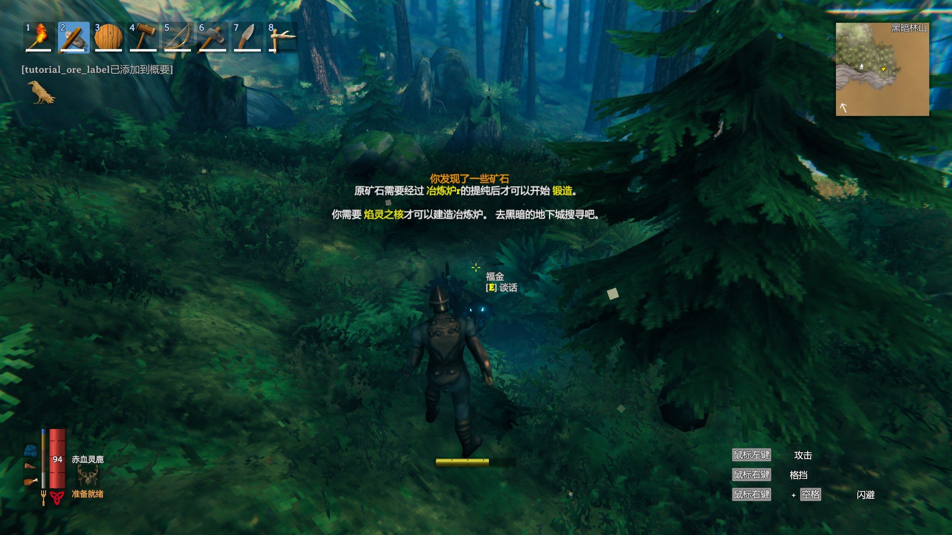 我把剛剛從赤血靈鹿身上掉落的硬鹿角做成一把鎬,福金又跑出來說黑暗林山會有礦物,可以去那裏採集。