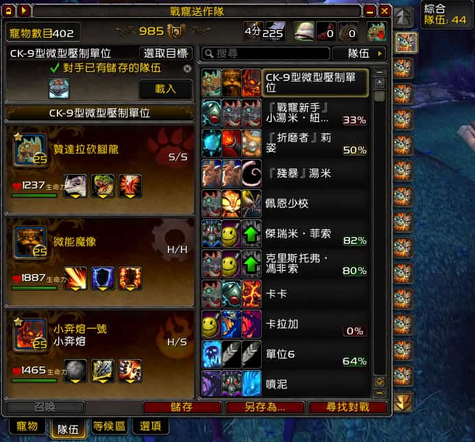 Rematch是個魔獸世界戰寵很好用的UI,主要是管理戰寵的隊伍編制,它的功能有: