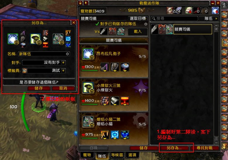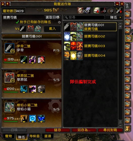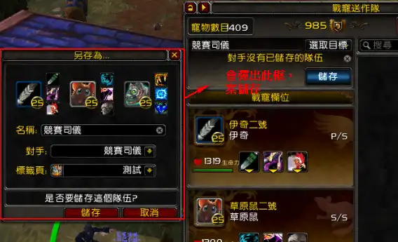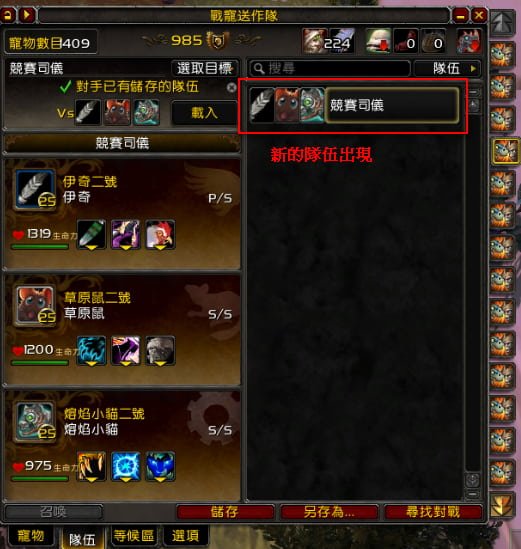 1.可以儲存指定對手時所使用的戰寵及配置技能