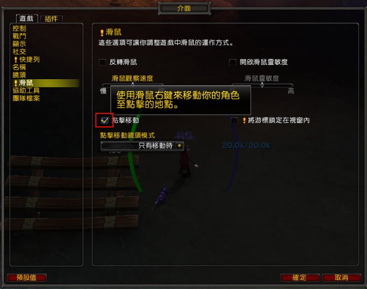 (A.)ESC→介面→滑鼠→點擊移動打勾