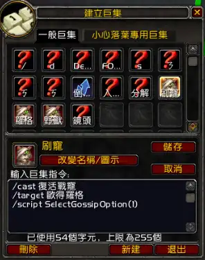 /script C_GossipInfo.SelectOption(1)備註:歐德羅格是NPC的名稱,請自行修改