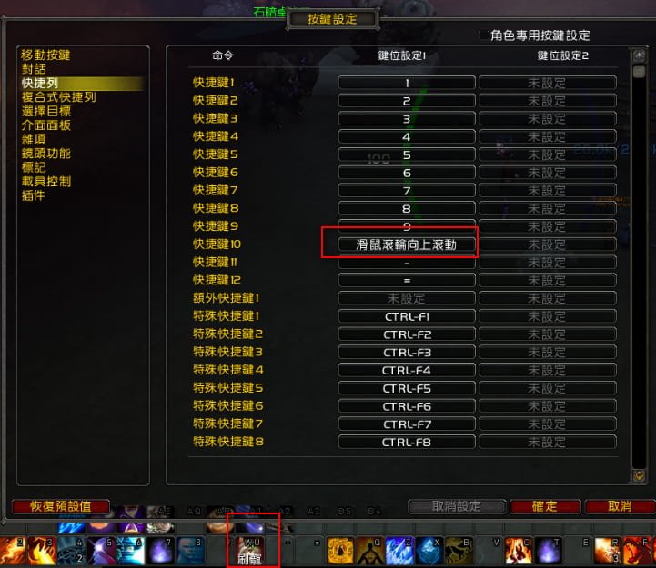 (E.)ESC→快捷鍵→快捷列→找一格沒有用的格子,設定為滑鼠滾輪向上滾動→並在該格位置把剛剛的巨集移到那個按鍵。