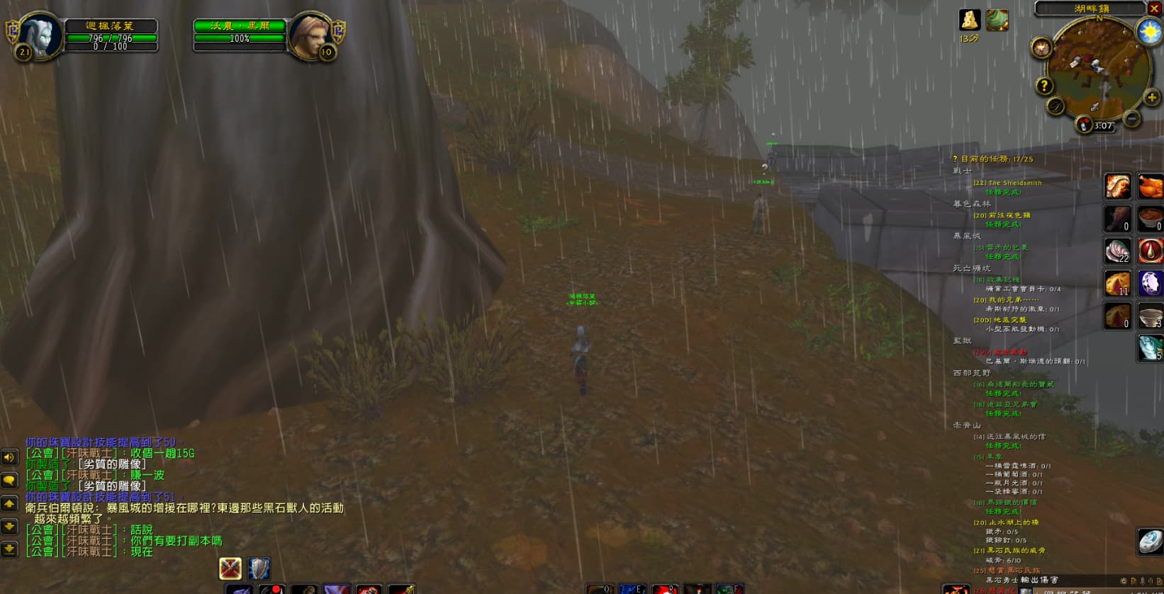 於是就是刷死亡礦坑,大概練到17等時,待在西部荒野把任務做完(大概19等吧),接著轉戰赤脊山(大概24等吧)解到剩下懸賞、菁英任務沒解就跑去暮色森林。