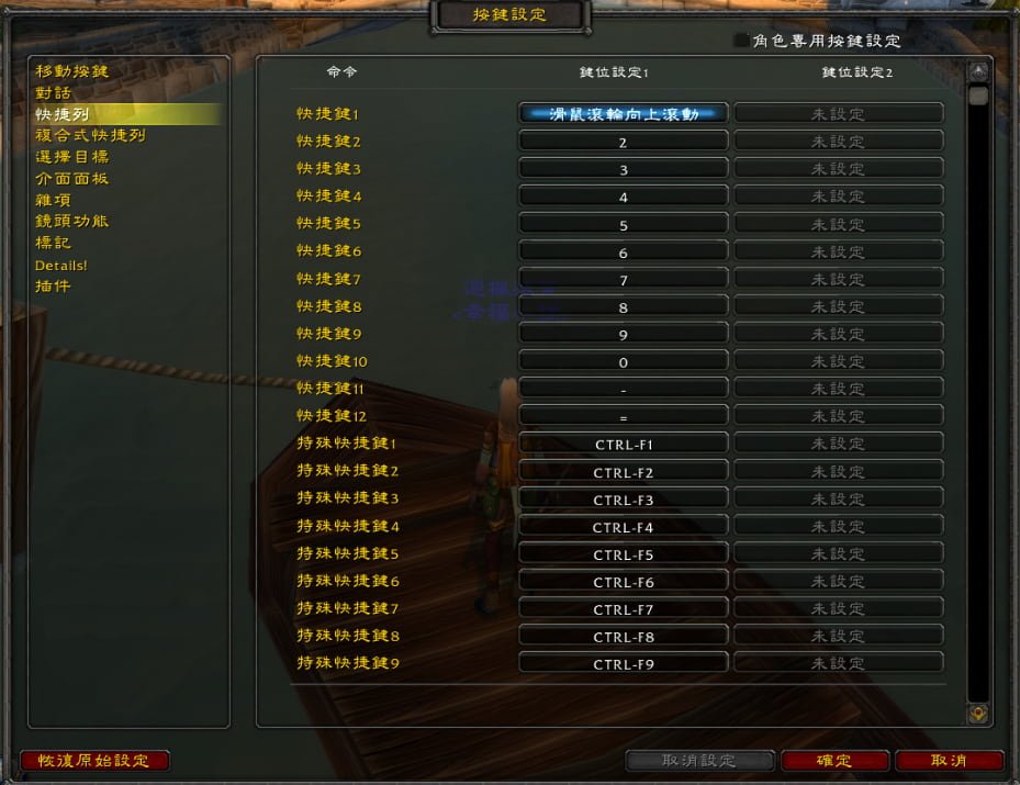 簡單說明一下,案ESC→按鍵設定→然後在"快捷列"頁面裡找快捷鍵1(記得先把釣魚技能放在這一格)→設定成"滑鼠滾輪往上"。