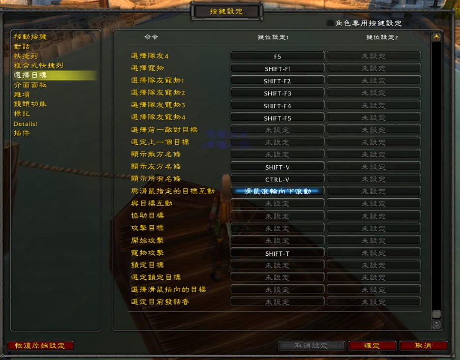 然後在選取目標分頁裡,找"與滾輪指定的目標互動",設定成"滑鼠滾輪往下"。