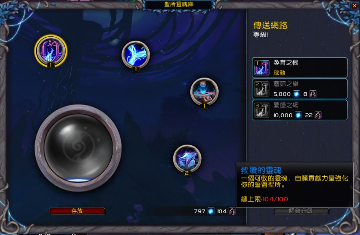 要提升獲取靈魄的效率,可以先將聖所的設施升級。成就如下: