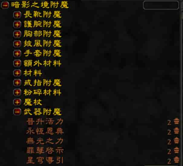 前一個版本可附魔的裝備只有戒指與武器,暗影之境版本變成可以多附長靴、護腕、胸部、披風、手套了,所以落葉認為這版本的附魔需求量一定會變很大!