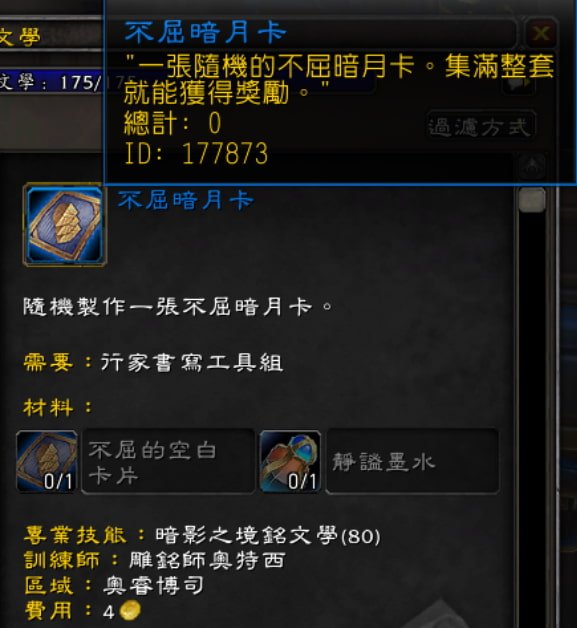 因為在製造按月卡時,都是先製造出XX之一、XX之二…直到XX之八。要湊齊一套從之一到之八才可以把它合成暗月卡飾品。