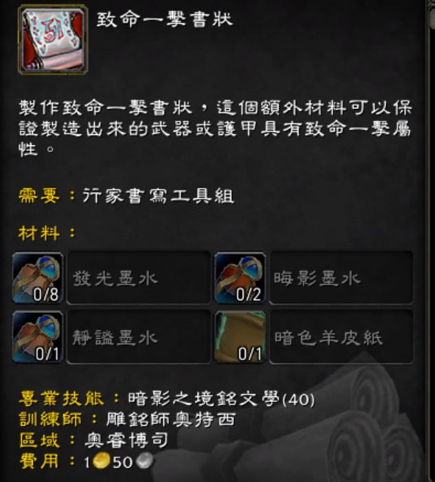 銘文學是我感觸最多的專業技能,為什麼這樣講,因為當初在巫妖王之怒推出時,是個需求很大的專業技能。