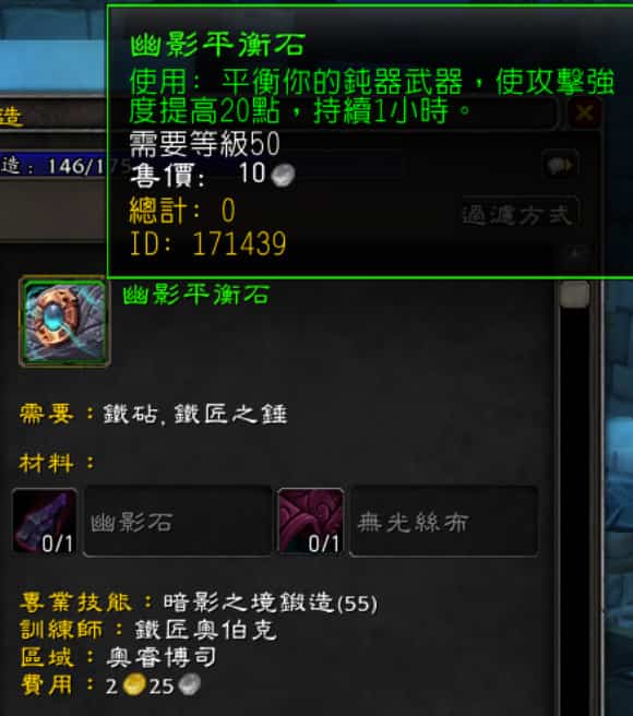 暗影之境版本也新增磨刀石,使武器攻擊強度提高,持續1小時,我想這會是鍛造的一大商機之一。