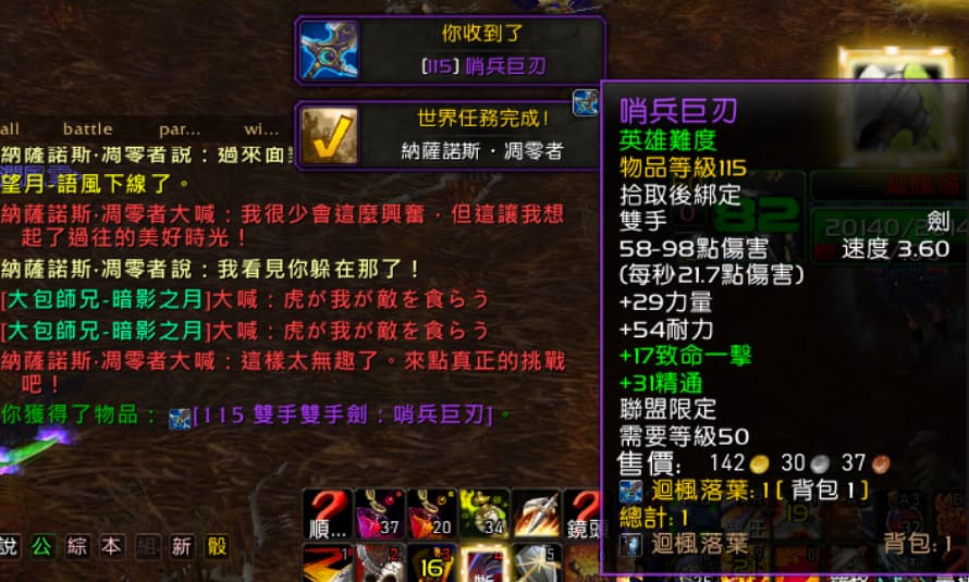 不過殺死菁英怪也會掉落等級110地紫色品質裝備,也算是給才剛滿級的小號一個快速衝裝等的方法啦!
